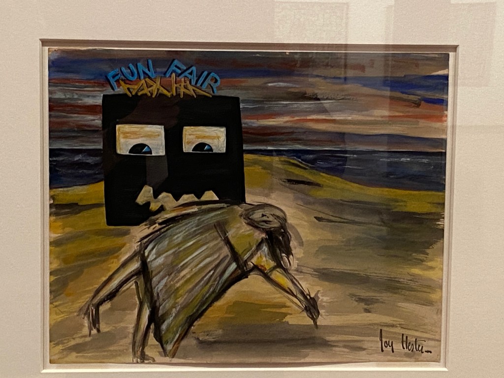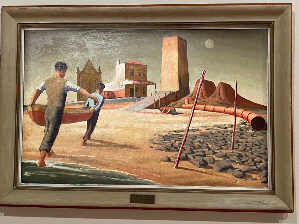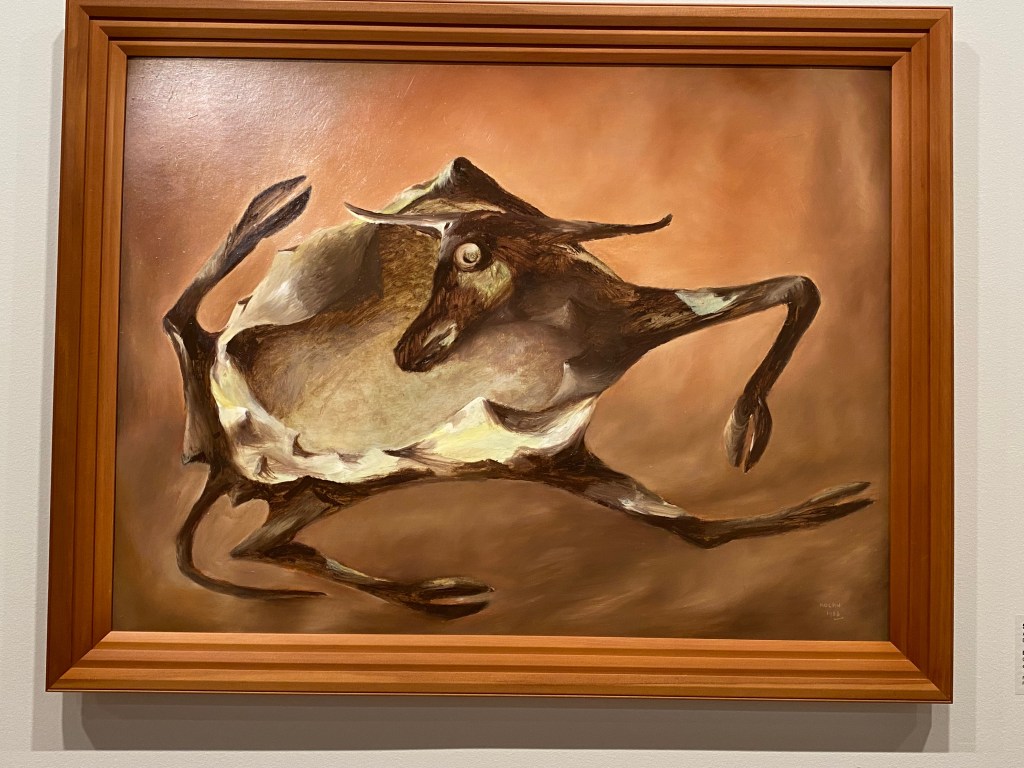 Perhaps the most surprising moment came in a gallery of Australian surrealism: masked faces, abstracted bodies, and textured dreamscapes. One portrait in particular stared back at me with haunting, almond-shaped eyes — strange, beautiful, impossible to forget.