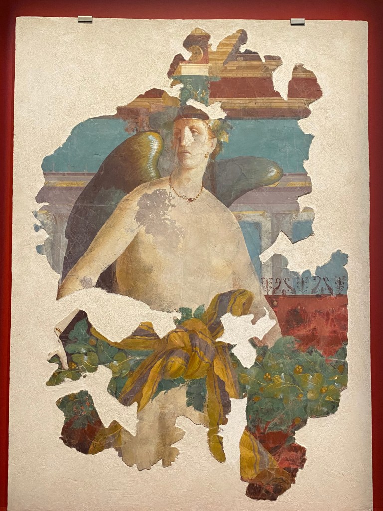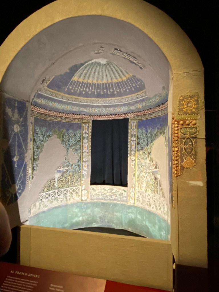 From the moment we entered, the space drew us in. The first room was dimly lit, giving the sense of walking into something ancient and sacred. Visitors were surrounded by real remnants of Pompeian life — from stunning frescoes and sculptures, to delicate jewellery, pottery, and even tools used in everyday life.