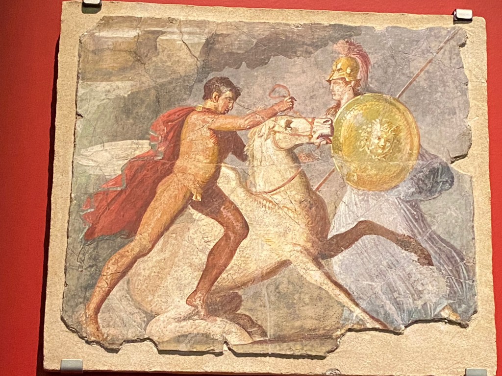 The photos I took barely do justice to the atmosphere — a glimpse into the haunting beauty of a civilisation preserved through tragedy. Mosaic tiles, domestic utensils, and statues of whispered stories of lives interrupted — a young woman’s bracelet, a merchant’s jug, a family’s fresco-lined dining room.