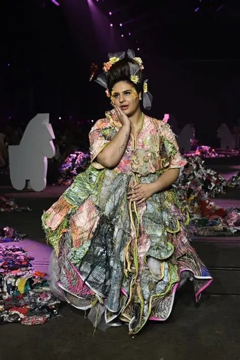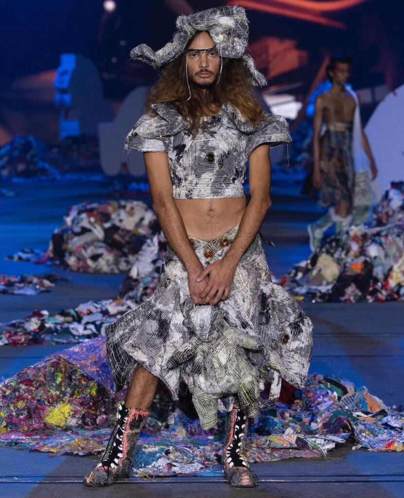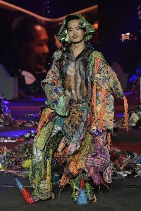 From the moment the first model walked out, it was clear this wasn’t going to be a typical fashion show. The outfits were big, colourful and detailed. Some looked like moving sculptures, with layers of fabric, hand-painted patterns, and large, padded shapes rising from heads, shoulders and arms. Others featured traditional-style robes with floral prints, embroidery, and soft flowing fabrics.